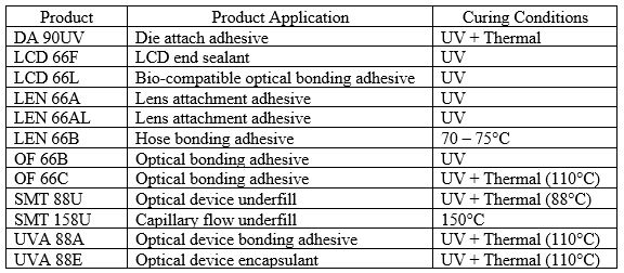 YINCAE's LEN 66 series features one part, 100% solid, super-fast UV curable bonding adhesives. This series has been designed for lens attachment, protective window covers, and touch screens. Other applications include LED lamination and sealing, polarizer lamination, and touch screen bonding. After cure, LEN 66 products not only provide a bubble free optical coverage, high moisture resistance, and excellent weatherability, but also forms very flexible bonds, which can easily dissipate thermal stress from different C.T.E. substrates. Some highlights are: