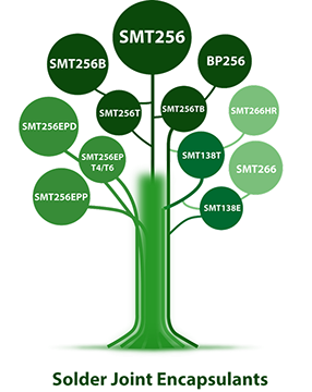 The YINCAE® SMT 256/SMT 266 Product Series is a family of microchip assembly and ball attachment adhesive products that are used to enhance solder joint reliability and eliminate solder joint cracking in CSP, BGA, flip chips and POP microchip applications. They remove metal oxide and allow individual solder joints to be formed, encapulated by 3-D polymer network. The resulting solder joint bond is 5 to 10 times stronger than that of conventional underfill. These products are specially engineered for use in lead-free, Sn/Pb and Sn/Bi processes. Several products are available in the series, each is formulated to meet specific product design parameters. The SMT 256 products are designed for dip or print applications, whereas the SMT 266 products are designed for automated jetting applications during assembly (and can also be brushed on during rework). A Dip Paste product with similar performance properties is also available. All products in this series provide a perfect solution for customers looking to strengthen the solder joint assembly and eliminate underfilling in a 100% reworkable manner.